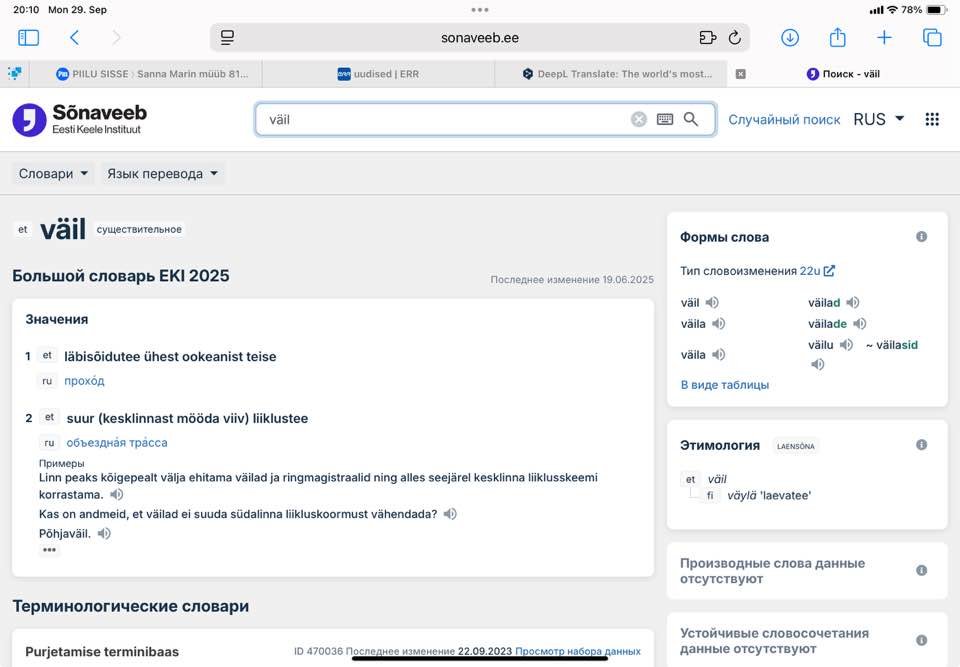 Tegin 29.septembril 2025.a. postituse FB-s, kus uurisin natuke putukaväilade teemat ja kuidas see “putukaväil” vene keeles on, sest pean esinema mitmes vene keelses saates, rääkimaks kohalikest st Tallinna teemadest.
